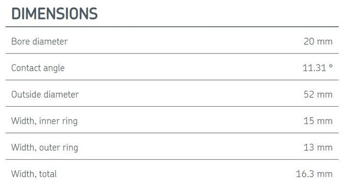 | Arrangement of contact angle (double-row bearing) | Not applicable |