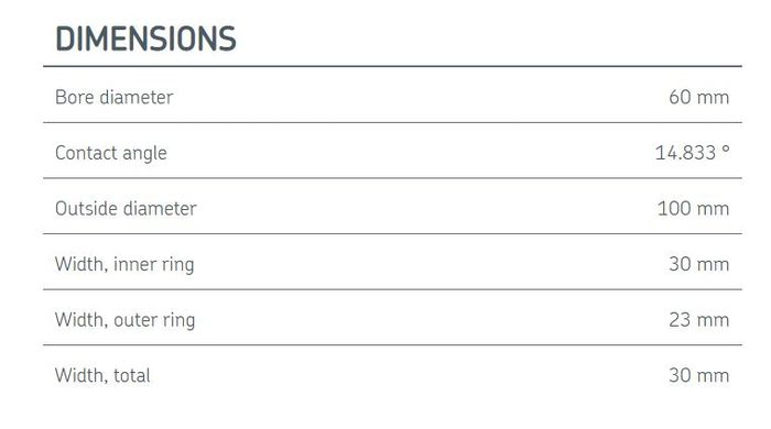 | Arrangement of contact angle (double-row bearing) | Not applicable |