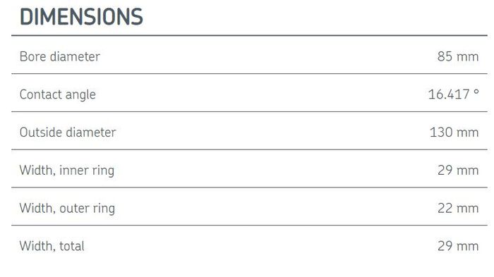| Width, inner ring | 29 mm |