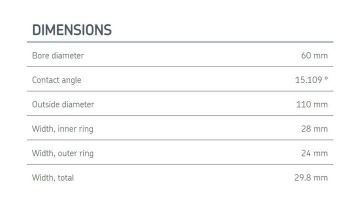 | Arrangement of contact angle (double-row bearing) | Not applicable |