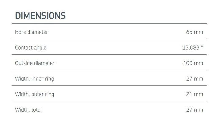 65.00 mm ID x 100.00 mm OD x 27 mm Width