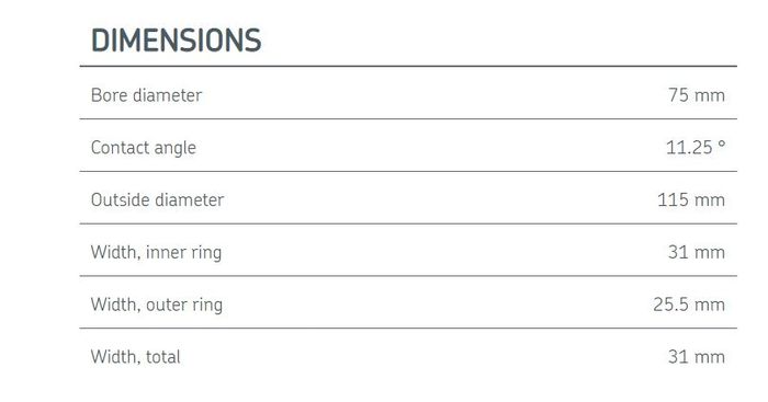 75.00 mm ID x 115.00 mm OD x 31 mm Width