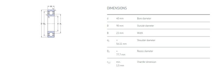 40.00 mm ID x 90.00 mm OD x 23.00 mm Width