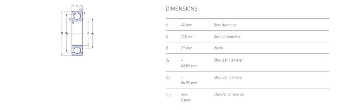 40.00 mm ID x 110.00 mm OD x 27.00 mm Width