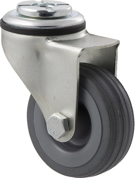 K Series castor, 65mm x 23mm grey rubber wheel, plain bearing, swivel bolt hole zinc, 50 kg load rating