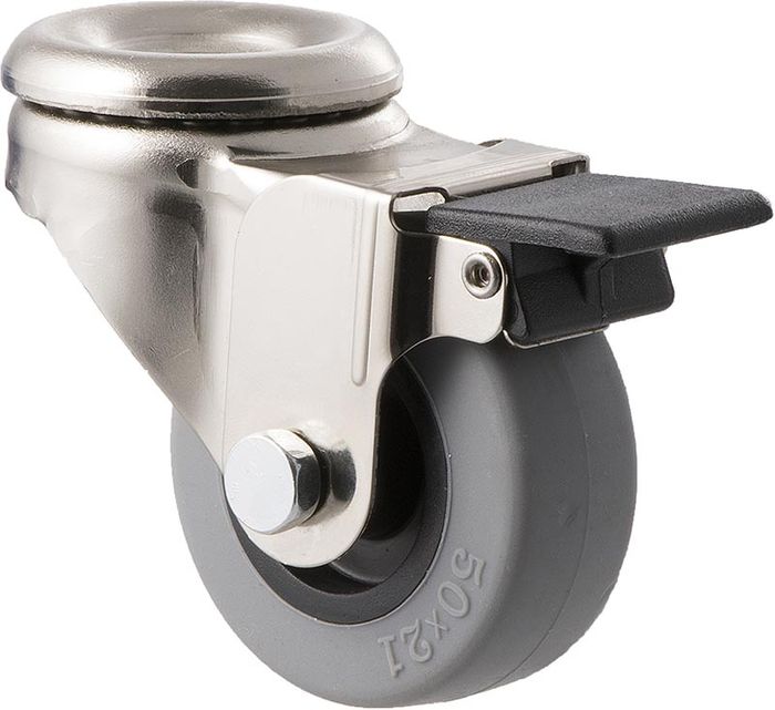 L Series castor, 50mm x 20mm grey TPE wheel, plain bearing, 30 kg, swivel bolt hole with brake.