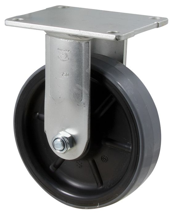 H Series castor, 150mm x 40mm polyurethane (PU) on nylon wheel, roller bearing, fixed plate, zinc fork, 450 kg load rating.