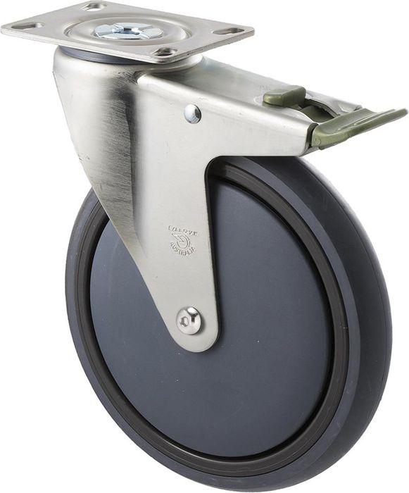 M Series castor, energy absorbent, 175mm grey rubber, precision bearing, swivel plate, direction lock, Chicago screw axle, 200 kg load