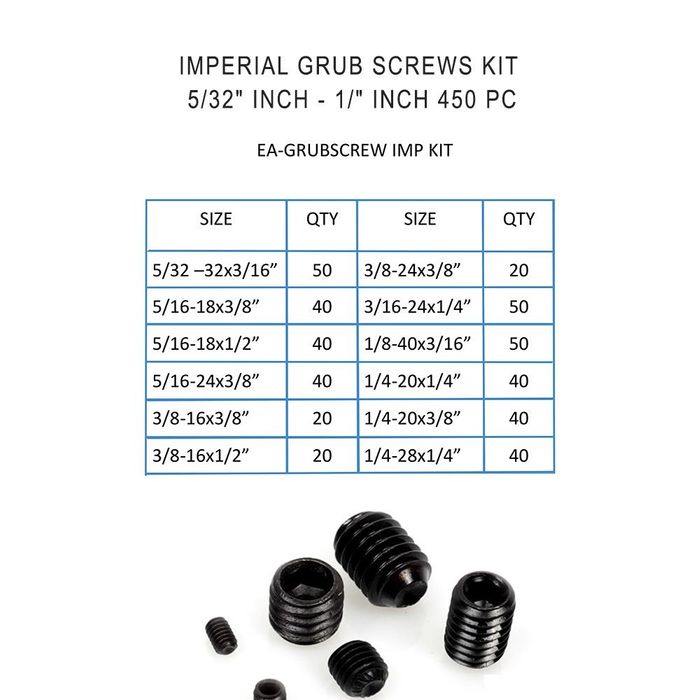 Eureka Assortments Imperial Grub Screws Kit 5/32" Inch - 1/" Inch 450 pc