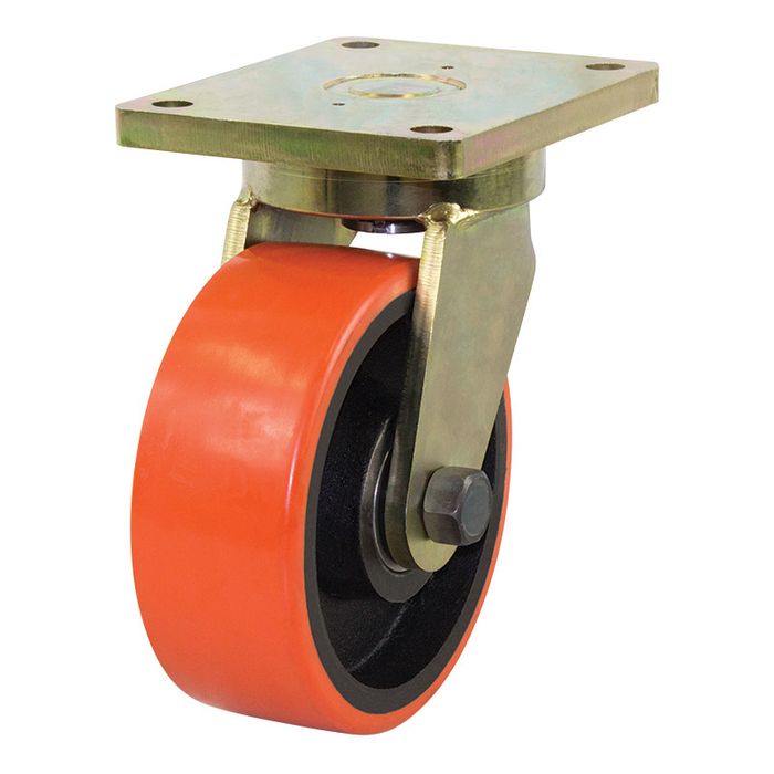 The S8904 manufactured by Richmond is a swivel frame castor and uses a polyurethane wheel. This swivel castor is one of our 3000 series range and has a top load capacity of 2000kg. The S8904 wheel is fitted with ball bearings. The swivel frame design of this castor allows the castor to swivel 360°. The overall polyurethane wheel diameter is 200mm, the wheel width is 76mm and you can order separately (Part Number: PU823). For the same castor with a brake, see S8904B.