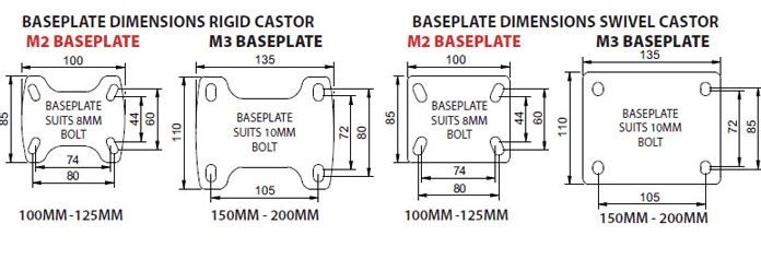 Ideal for use in wet areas or where frequent wash down is necessary, such as food processing, handling or health industries in which corrosive conditions are common, Richmond offers a pressed stainless steel castor with unrivalled finish and performance. Richmond’s Stainless Steel Excel Plate castors features a swivel lock and brake and can be transported when assembled with a rebound polyurethane wheel. Further to the performance of this castor series high temperature wheel options are available for bakery and oven applications.