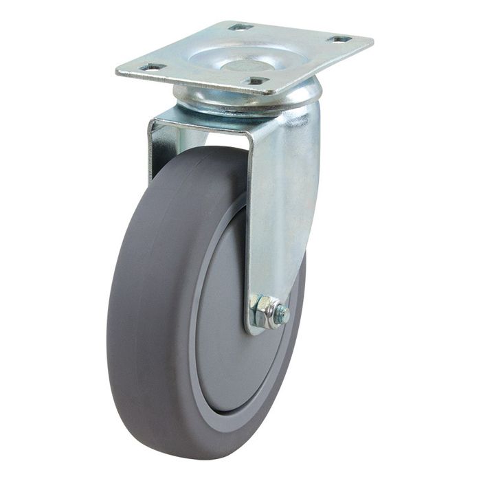 The S5525 manufactured by Richmond Wheel and Castor Co. is a swivel frame castor and uses a institutional rubber wheel. This swivel castor is one of our light industrial series range and has a top load capacity of 100kg. The S5525 is assembled with ball bearings on the castors axle. This castors swivel frame allows the castor to swivel 360°. The outside diameter of the institutional rubber wheel is 125mm, the wheel width is 32mm and you can order separately (Part Number: IR5007). To order this castor with a brake, search for S5525B.