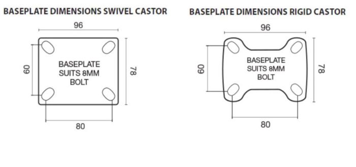 The S4488 from Richmond is a swivel frame castor and has a nylon wheel. This swivel castor is one of our stainless steel elite plate range and has a top load capacity of 100kg. The S4488 is assembled with plain bearings on the castors axle and is baseplate mount. The swivel frame design of this castor allows full swivel rotation to enable steering. The diameter of the nylon wheel is 100mm, the wheel width is 30mm and can be ordered separately (NY4417). This model can also be ordered with a brake (part number S4488B).