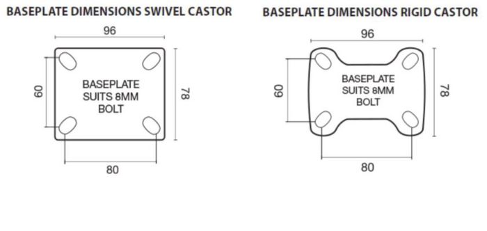 The S4488B manufactured by Richmond is a swivel frame castor and is fitted with a nylon wheel. This swivel castor is in our stainless steel elite plate range and can hold loads up to 100kg. The S4488B wheel is fitted with plain bearings and is mounted with the baseplate. The swivel frame of this castor allows full swivel rotation to enable steering. The nylon wheel diameter is 100mm, the wheel width is 30mm and can be ordered separately (NY4417). This model can also be ordered without a brake (part number S4488).