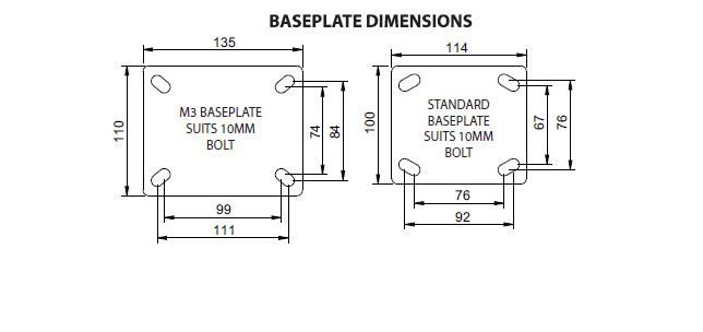 Richmond Heavy Industrial Series castor has been developed to meet the exacting demands of customers wanting castors capable of being transported long distances. Logistics, manufacturing, display and exhibition services are just some of the common businesses relying on our heavy industrial series castors daily. Zinc plated to provide corrosion resistance, a grease nipple to maintain smooth operation and an industry leading swivel lock and brake design all combined with a 6mm baseplate thickness and welded forks that provide uncompromised strength and resistance to flexing.