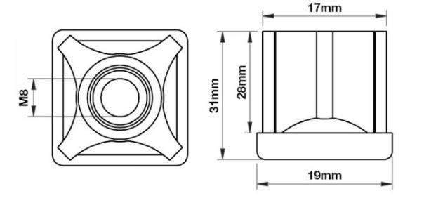 19mm Square M8 Threaded Tube End Mild Steel (TIR19SQM08)