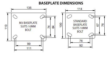 Richmond Heavy Industrial Series castor has been developed to meet the exacting demands of customers wanting castors capable of being transported long distances. Logistics, manufacturing, display and exhibition services are just some of the common businesses relying on our heavy industrial series castors daily. Zinc plated to provide corrosion resistance, a grease nipple to maintain smooth operation and an industry leading swivel lock and brake design all combined with a 6mm baseplate thickness and welded forks that provide uncompromised strength and resistance to flexing.