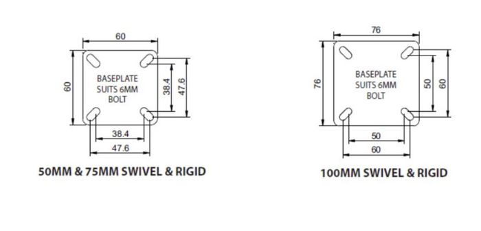 Plate mounted, Richmond’s Utility Castor has endless light duty applications including wire baskets, display equipment and light trolley applications. Zinc plated, pressed metal construction provides an attractive corrosion resistant finish. Together with the choice of nylon or grey non-marking wheels, this castor is truly a utility by name and nature , a must have for all small fabricating, retailers and home handy man purposes.