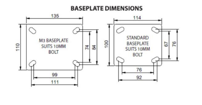Richmond Heavy Industrial Series castor has been developed to meet the exacting demands of customers wanting castors capable of being transported long distances. Logistics, manufacturing, display and exhibition services are just some of the common businesses relying on our heavy industrial series castors daily. Zinc plated to provide corrosion resistance, a grease nipple to maintain smooth operation and an industry leading swivel lock and brake design all combined with a 6mm baseplate thickness and welded forks that provide uncompromised strength and resistance to flexing.