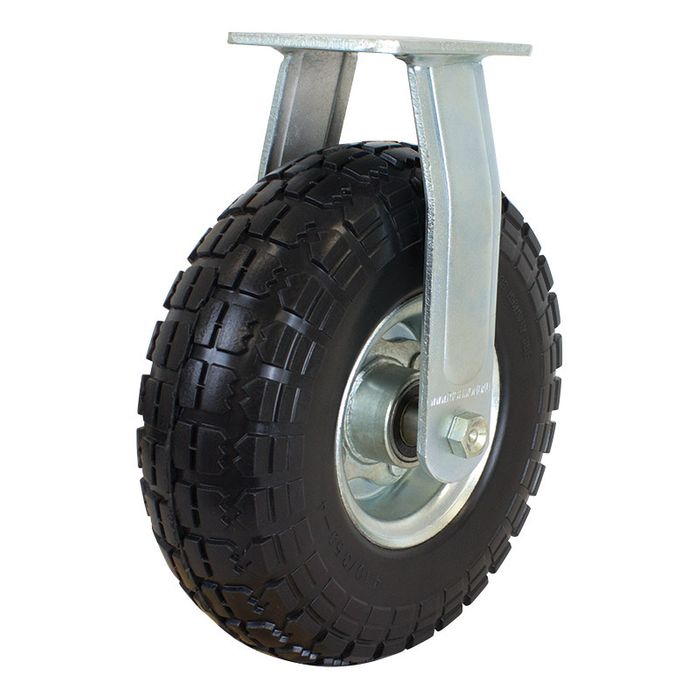 The R1089 by Richmond is a rigid frame castor and uses a puncture proof wheel. This rigid castor is in our puncture proof series range and can hold loads up to 50kg. The R1089 wheel is fitted with ball bearings. This castors rigid frame only allows linear movement unless used with swivel castors. The diameter of the puncture proof wheel is 255mm, the wheel width is 83mm and you can order separately (Part Number: PF1084).
