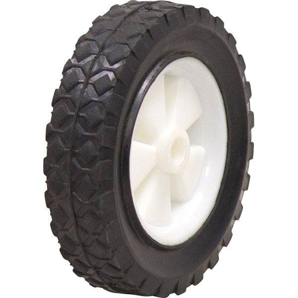 The RN6661-50 manufactured by Richmond Wheel and Castor Co. is a 150mm diameter rubber tyred nylon wheel that can hold loads up to 50kg and has a tyre width of 37mm.The axle diameter is 1/2 inch (12.7mm).
