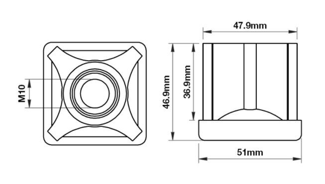 51mm Square M10 Threaded Tube End Mild Steel (TIR51SQM10)