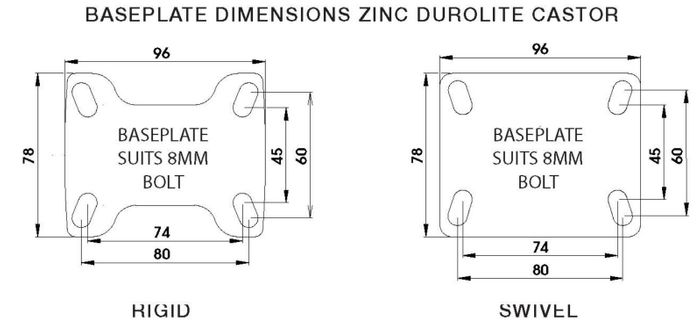 Available with a wide range of wheels, the Zinc Durolite Plate Series is commonly used on a vast array of mobile equipment. Enhanced by a twin swivel race ensuring longevity making it ideal for use in hospitals, retail shops and general industry. The baseplate of this castors has been designed for flexibility, with the bolt holes being slotted on an angle to allow users a multiple of mounting options. This means that the Zinc Durolite Plate castors can be matched with competitor and imported castors. The redesigned baseplate provides a superior castor for a growing number of uses and equipment.