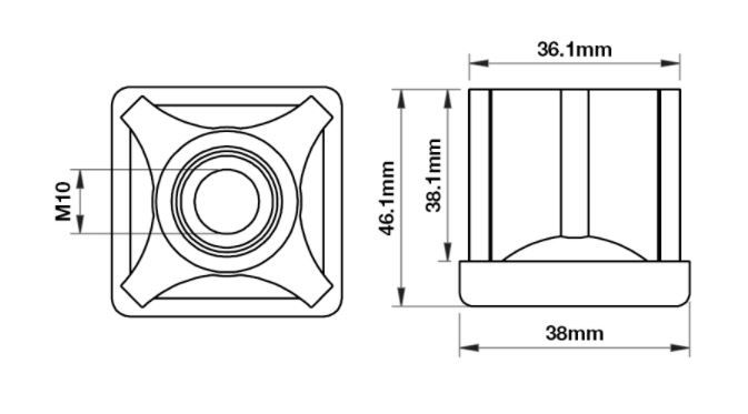 38mm Square M10 Threaded Tube End Mild Steel (TIR38SQM10)