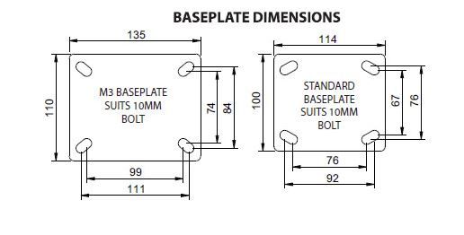 Richmond Heavy Industrial Series castor has been developed to meet the exacting demands of customers wanting castors capable of being transported long distances. Logistics, manufacturing, display and exhibition services are just some of the common businesses relying on our heavy industrial series castors daily. Zinc plated to provide corrosion resistance, a grease nipple to maintain smooth operation and an industry leading swivel lock and brake design all combined with a 6mm baseplate thickness and welded forks that provide uncompromised strength and resistance to flexing.