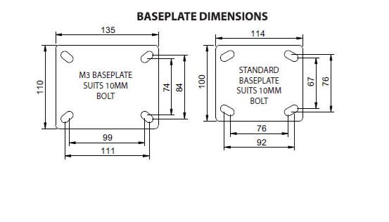 Richmond Heavy Industrial Series castor has been developed to meet the exacting demands of customers wanting castors capable of being transported long distances. Logistics, manufacturing, display and exhibition services are just some of the common businesses relying on our heavy industrial series castors daily. Zinc plated to provide corrosion resistance, a grease nipple to maintain smooth operation and an industry leading swivel lock and brake design all combined with a 6mm baseplate thickness and welded forks that provide uncompromised strength and resistance to flexing.
