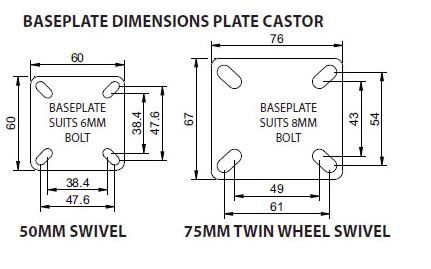 The twin wheel low profile design not only increases maneuverability but increases load capacity to the Richmond Utility Castor. Available in a plate or bolt fitting this castor is commonly used in shop fitting applications, light duty cabinets, home entertainment units and other furniture. Zinc plated, pressed metal construction provides an attractive corrosion resistant finish and is available with the choice of nylon or grey non-marking wheels.