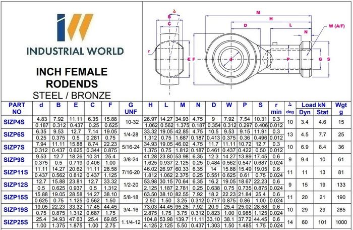 All rod ends are available in either left or right hand thread (Add the suffix “L” for left hand thread)