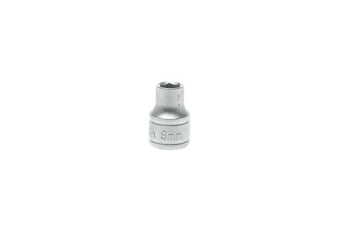 3/8" drive 6 point regular metric socket made from chrome vanadium with a satin finish. DIN 3120/3124/ISO 2726