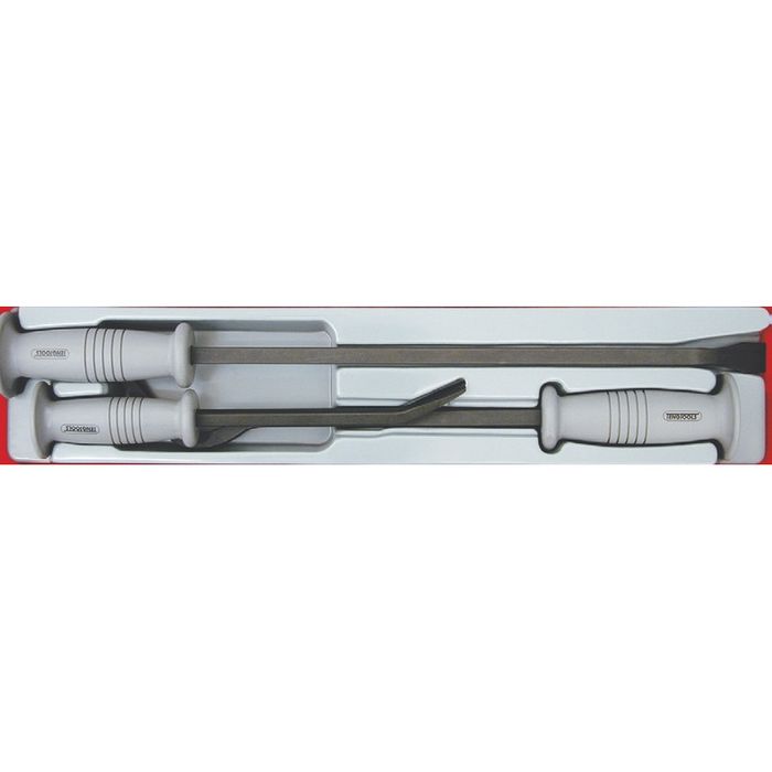 3 piece heavy duty pry bar set with Power Thru handles. The set is supplied in a unique Teng Tools drawer width TTX tray and can be used either on it's own or as part of the Teng Tools TC control system. The tray features a removable hinged click lock lid and dove tail joints which enable different trays to be locked together and used as trays in Teng Tools tool boxes and roller cabinets. All of the tools in the set have their own individual place so lost tools can easily be identified. (560x110x40mm, 1.8 kilos).