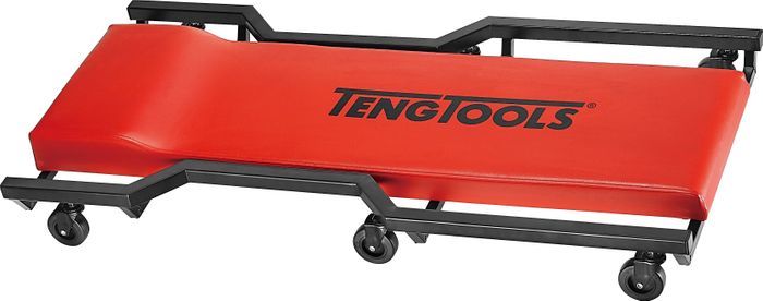 A stable and comfortable workshop creeper with sturdy wheels and recesses in the frame for the elbows to make it more comfortable to use.