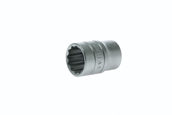 1/2" drive 12 point regular metric socket made from chrome vanadium with a satin finish. DIN 3120/3124/ISO 2727