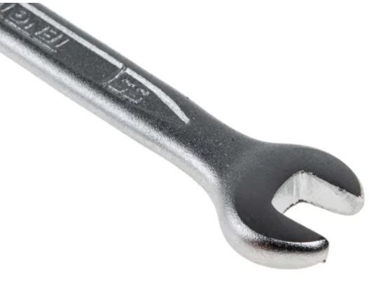 The Teng Tools metric combination spanner which is a ring and open ended spanner combined with the same size opening at each end. It is available with Teng Tools hip grip design on the ring end for contact with the flat side of the fastening for damage reduction and use on rounded nuts and bolts