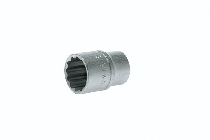1/2" drive 12 point regular AF socket made from chrome vanadium with a satin finish. DIN 3120/3124/ISO 2732