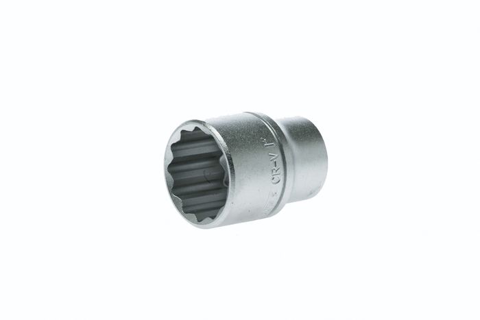 1/2" drive 12 point regular AF socket made from chrome vanadium with a satin finish. DIN 3120/3124/ISO 2735