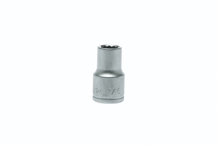 1/2" drive 12 point regular AF socket made from chrome vanadium with a satin finish. DIN 3120/3124/ISO 2726