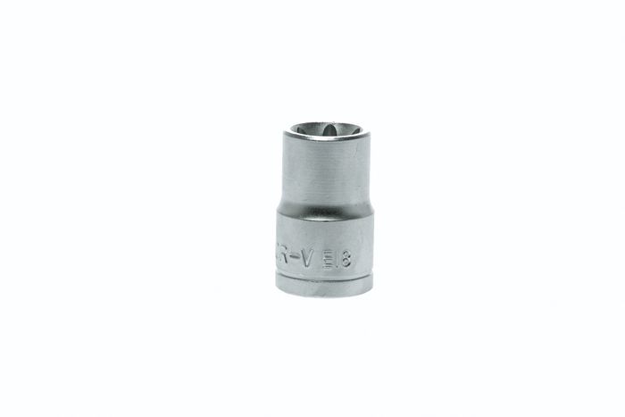 1/2" drive TX-E socket made from chrome vanadium with a satin finish.