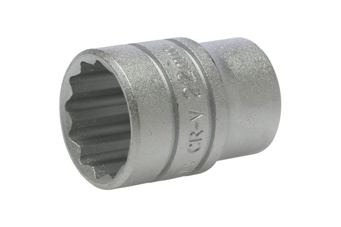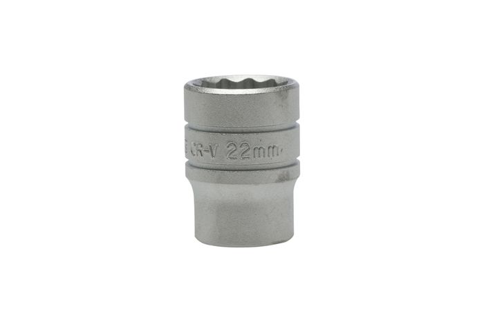 1/2" drive 12 point regular metric socket made from chrome vanadium with a satin finish. DIN 3120/3124/ISO 2727