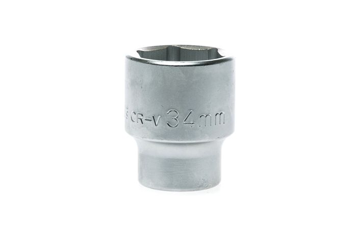 3/4" drive 6 point regular metric socket made from chrome vanadium with a satin finish.