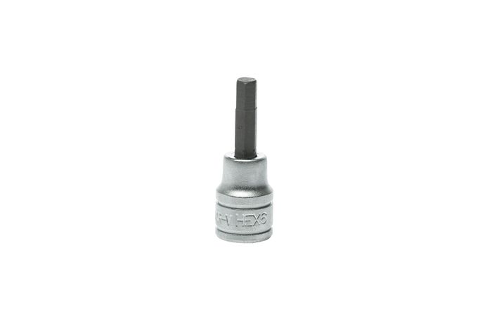 3/8" drive hex S2 socket bit made from chrome vanadium with a satin finish. DIN 7427