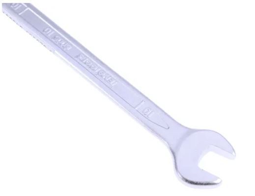 The Teng Tools metric combination spanner which is a ring and open ended spanner combined with the same size opening at each end. It is available with Teng Tools hip grip design on the ring end for contact with the flat side of the fastening for damage reduction and use on rounded nuts and bolts