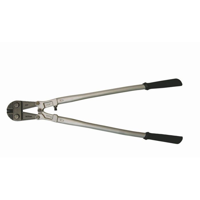 Hardened central cutting edge (cutting angle 30°). Compound action. Equipped with centering screw that gives increased safety when cutting. Tubular handles with plastic grips.