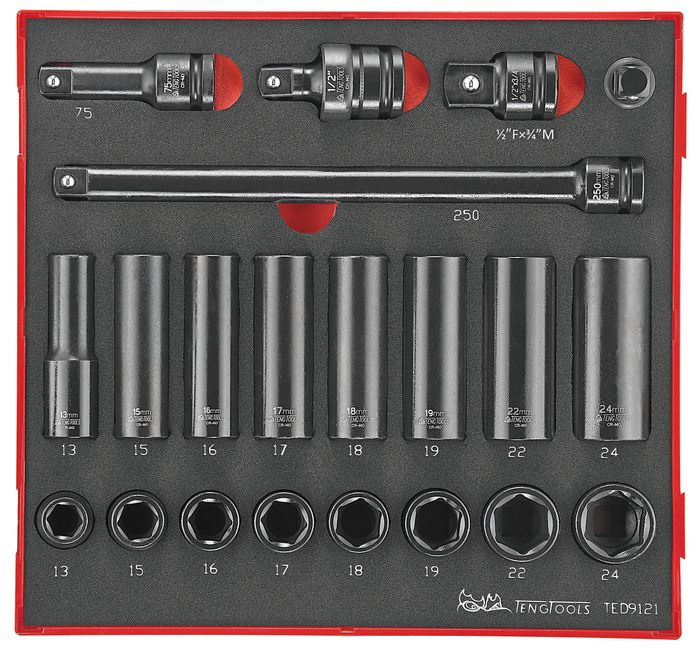 Teng Tools TED9121 21 Piece EVA 1/2" Drive Impact Socket Set