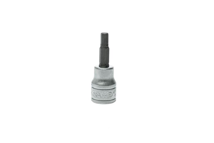 3/8" drive hex S2 socket bit made from chrome vanadium with a satin finish. DIN 7425