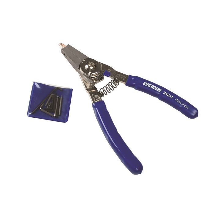 The KINCROME Interchangeable Circlip Pliers are made in the USA and feature a switch to change between Internal & External circlip types, and include a set of interchangeable tips to suit a large variety of different applications with a single plier.