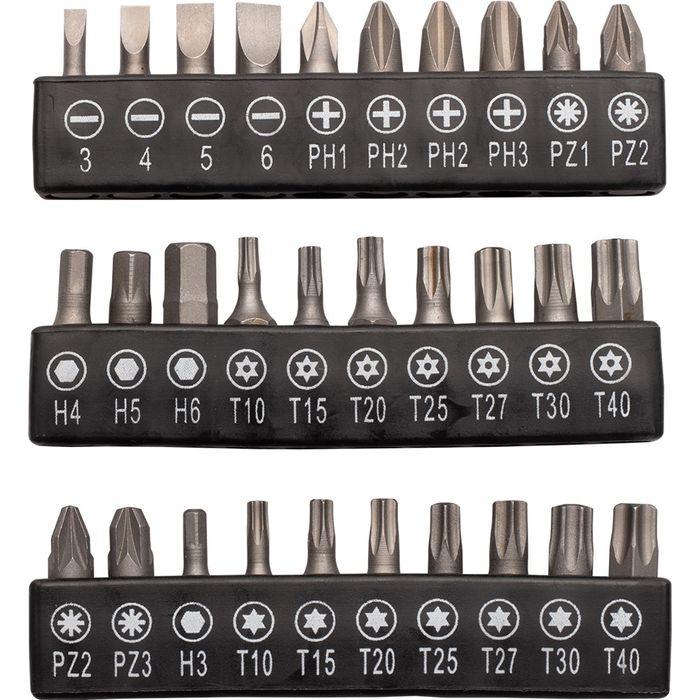 • TORX®: T7, T8, T9, T10, T15, T20, T25, T27, T30, T40